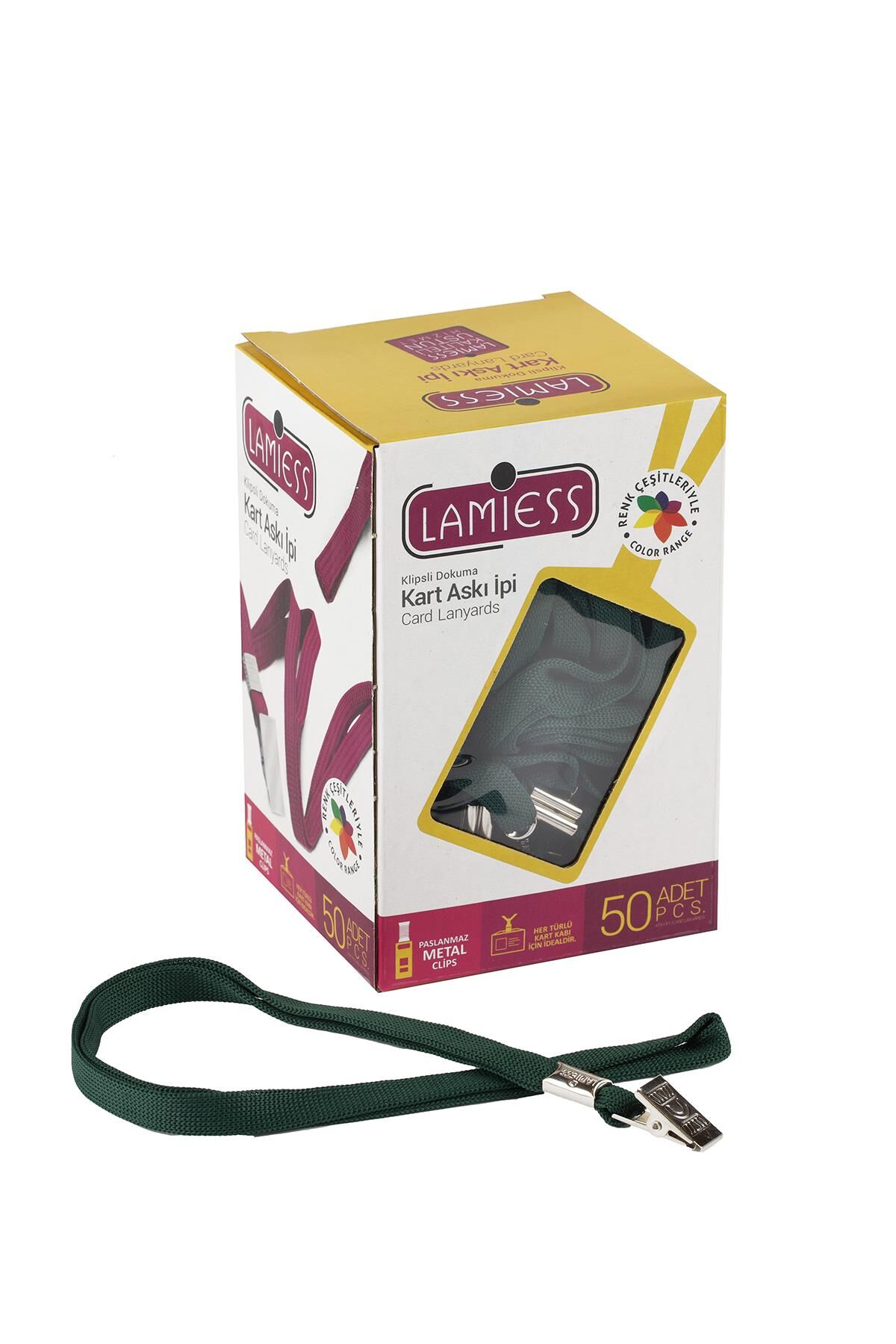 LAMİESS KART ASKI İPİ METAL MAŞALI KLİPSLİ YEŞİL 50 'Lİ